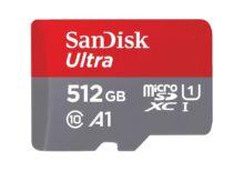 512 GB | Type MicroSDXC | Read speed 150 MB/s | UHS Speed Class Class 1 (U1) | Flash memory class Class 10 | Colour Red/Grey | Width 14.99 mm | Depth 1.02 mm | Height 10.92 mm | Memory adapter included SD |